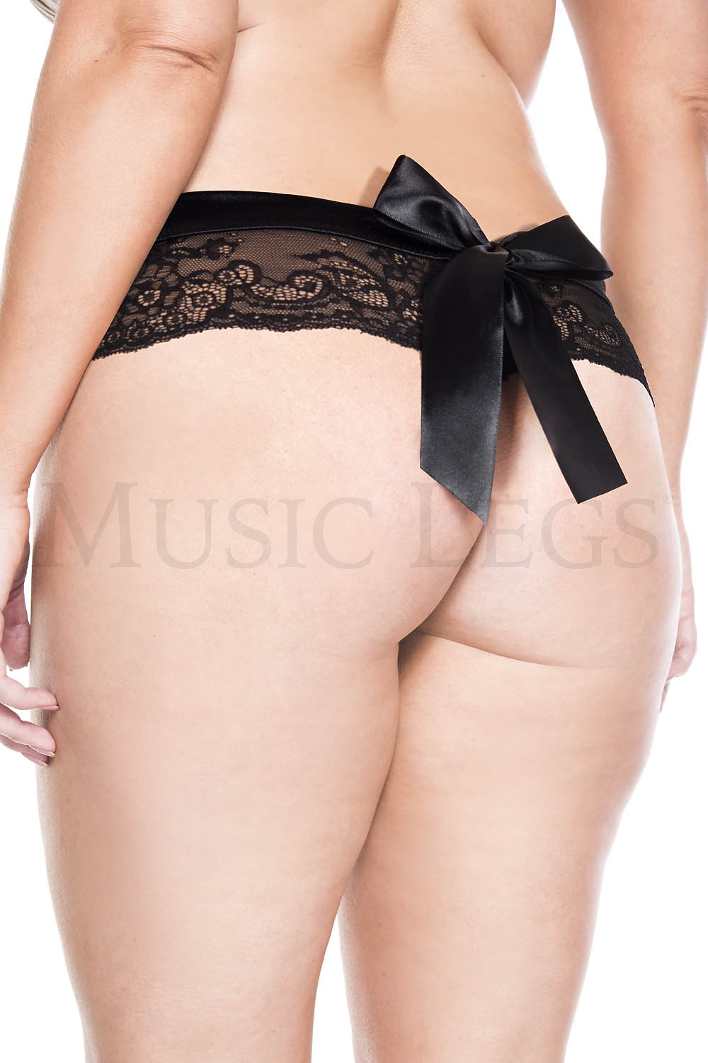 Plus size lace back bow crotchless panty