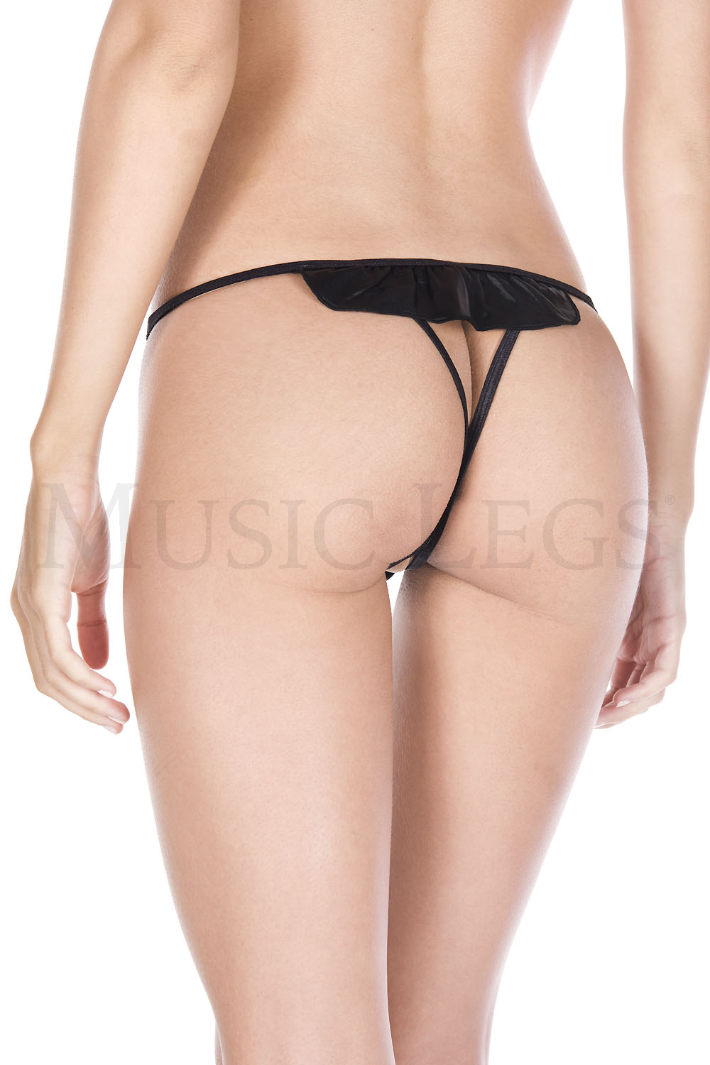 Satin front panel adjustable crotchless g-string