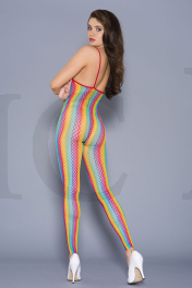 Spaghetti straps rainbow fishnet crotchless bodystocking (G-string not included)