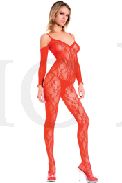 Lace crotchless bodystocking with attached long arm warmers (G-string not included)