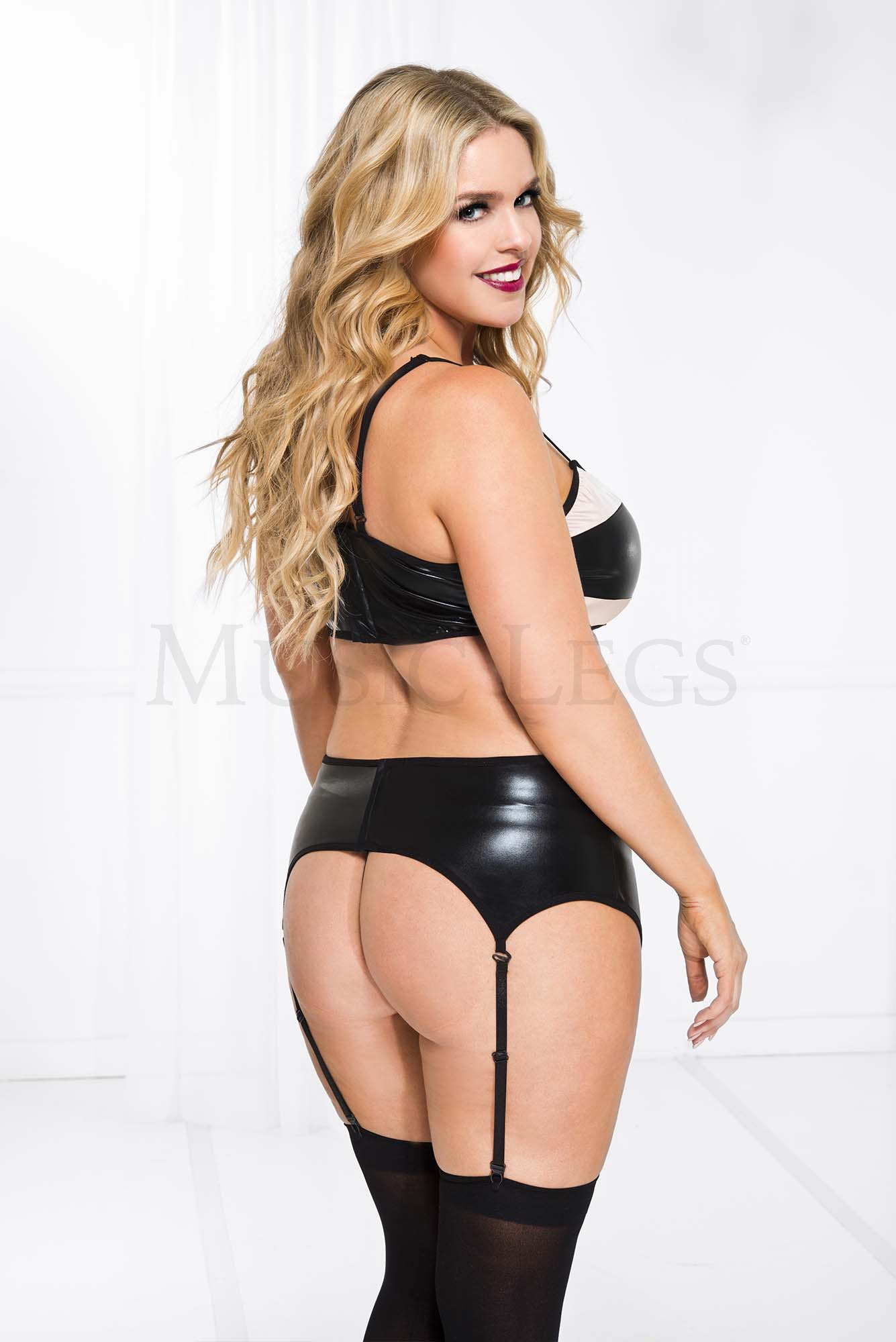 Plus size two tone wet look top with high waist garter and panty (Stockings not included)