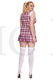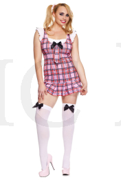 2 pc. Plus size ruffled sleeves plaid school girl dress with bow and tie Includes: 2 hair ties