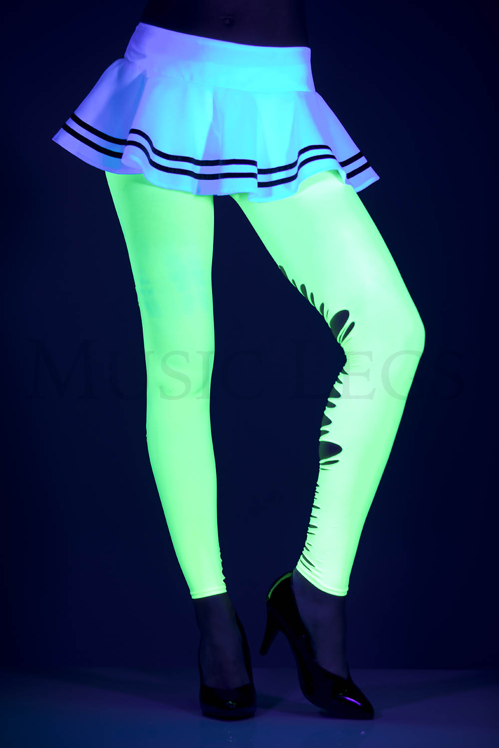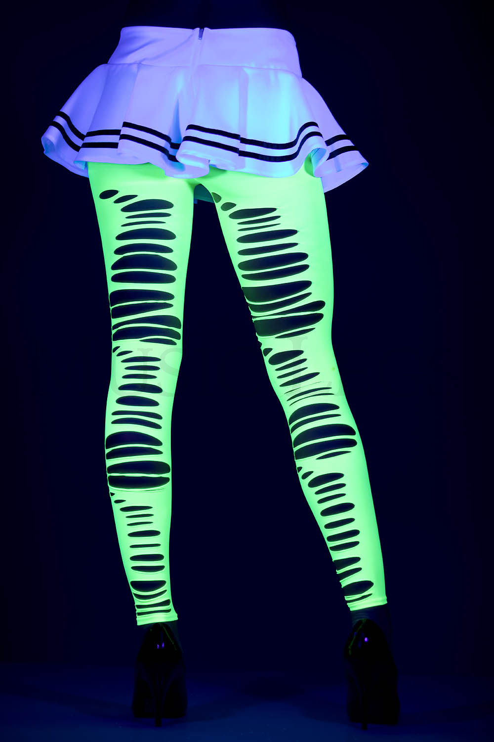 Spandex ripped opaque stirrup leggings (Glow UV Reactive)