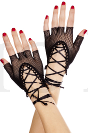 Lace up wrist length fishnet fingerless gloves