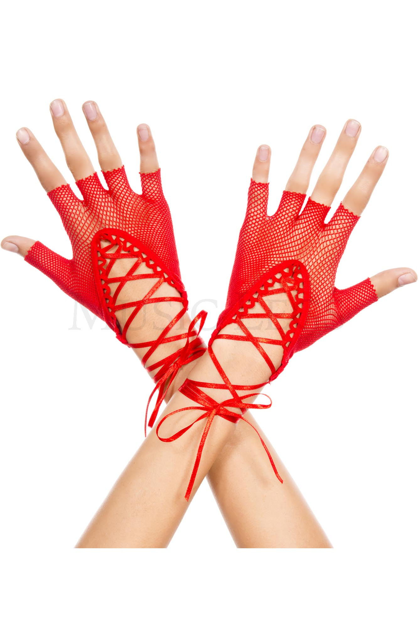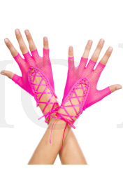 Lace up wrist length fishnet fingerless gloves