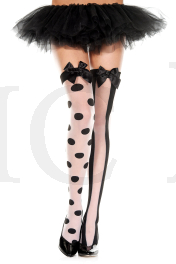 Polka dot and striped mismatch thigh hi with satin bow