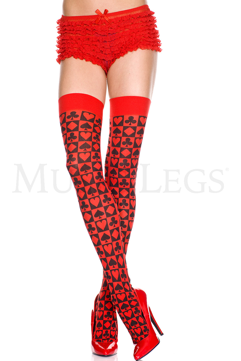 Opaque thigh hi with poker prints