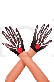 Skeleton and rose print fishnet gloves