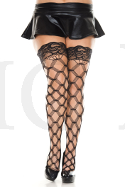 Plus size lace top with silicone multi strands spandex diamond net thigh hi