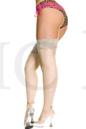 Sheer lace top backseam stocking with bow