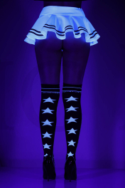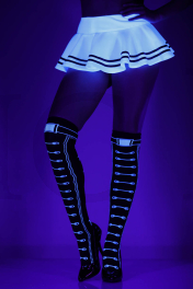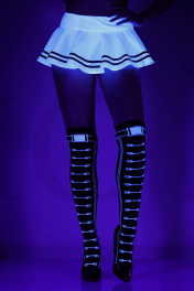 Faux lace up and belt with star backseam acrylic thigh hi
