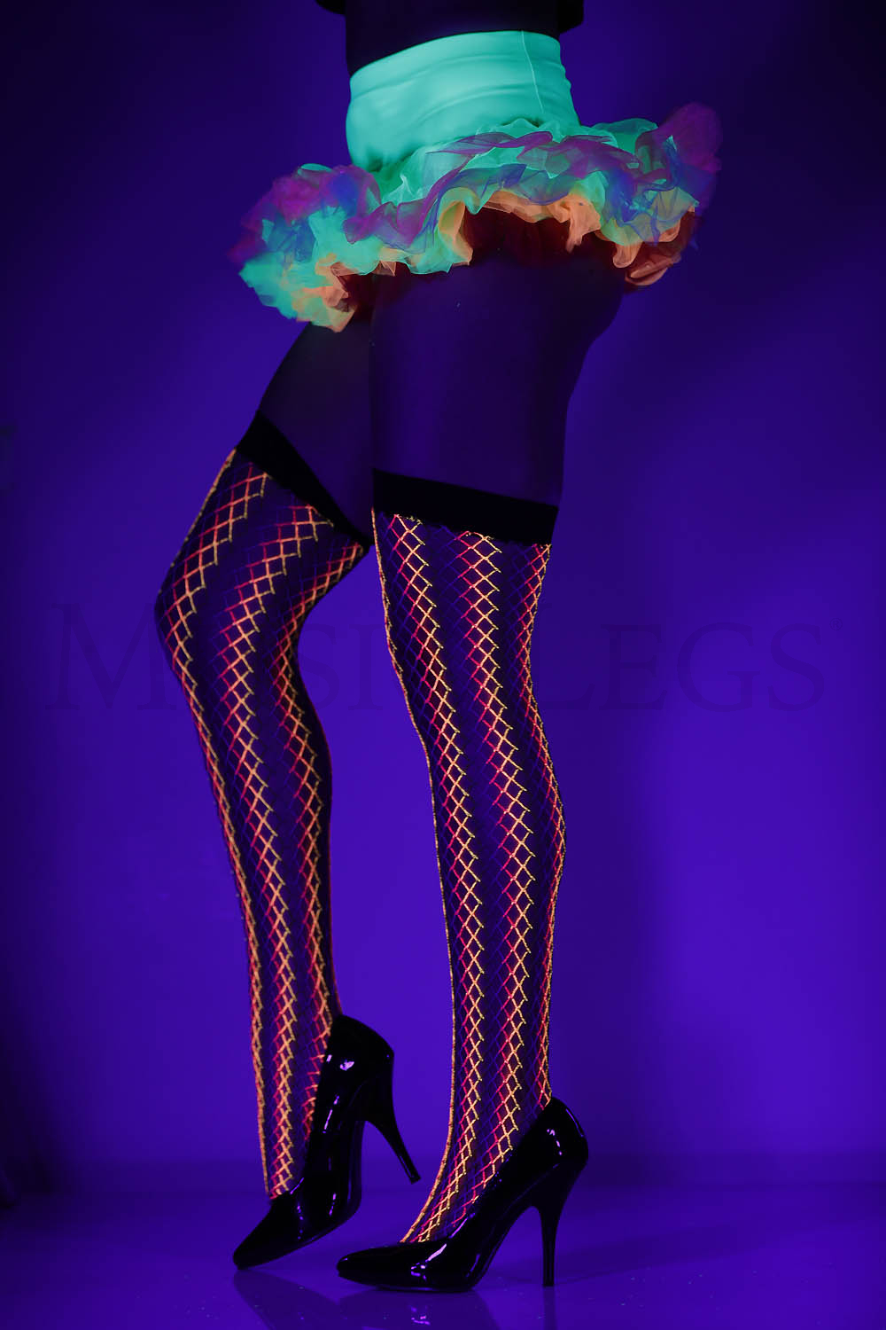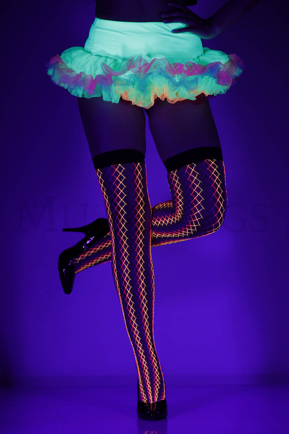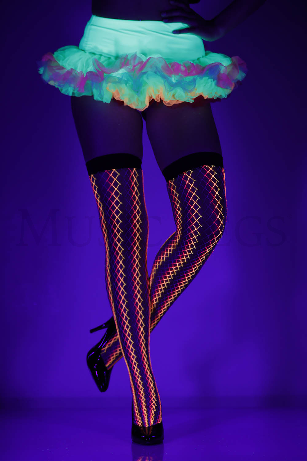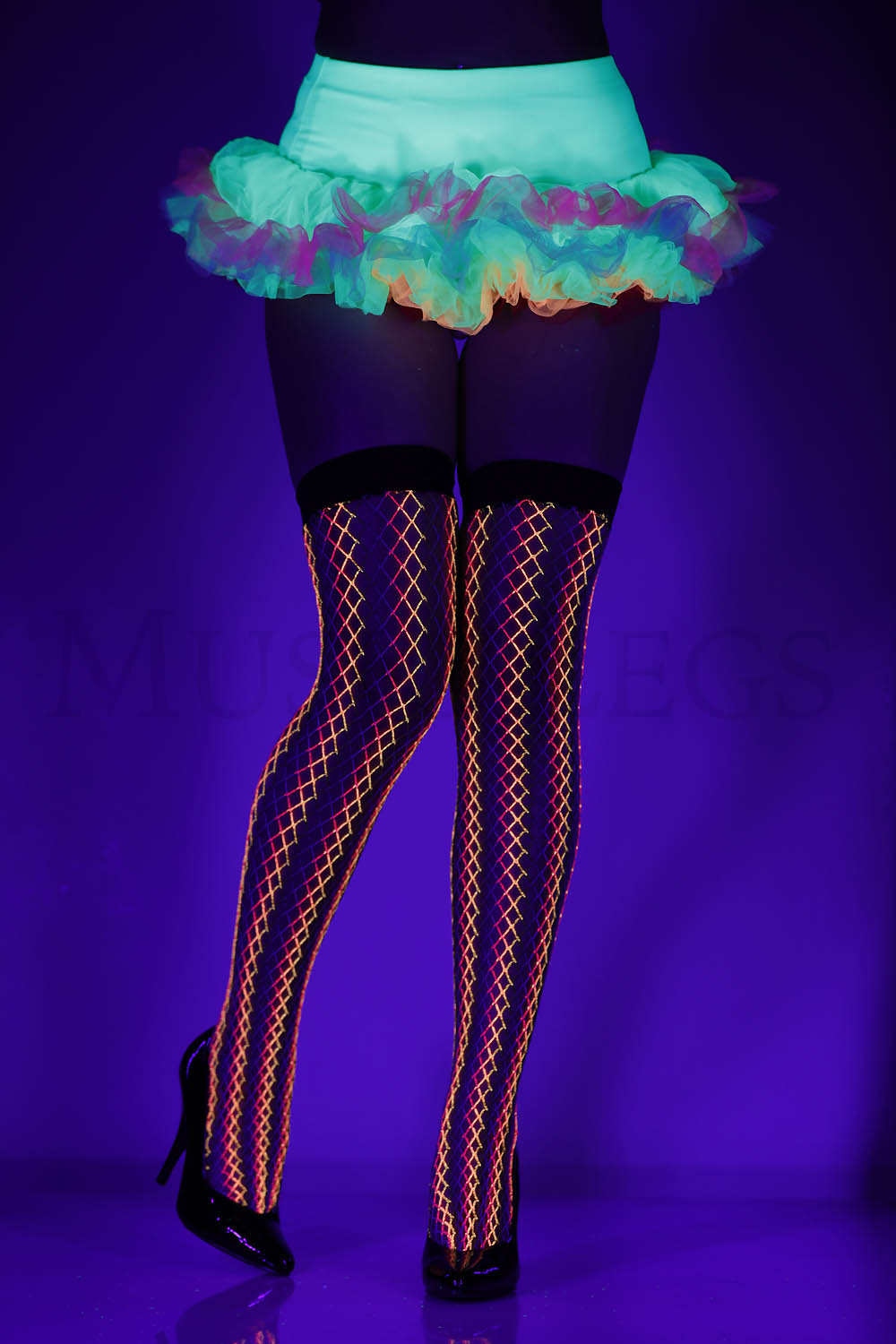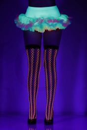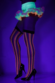 Neon color diamond net thigh hi with black top (Glow UV Reactive)