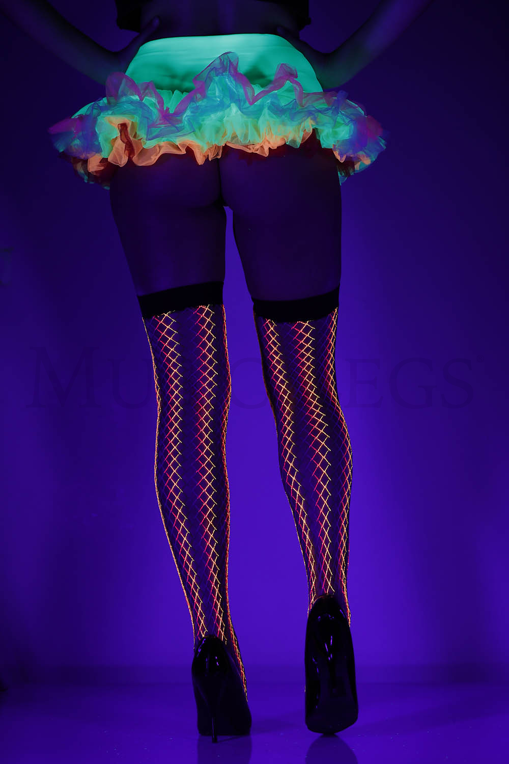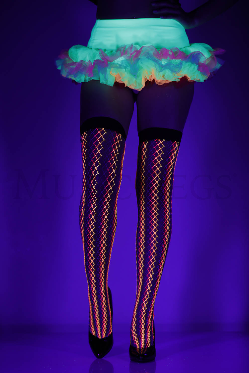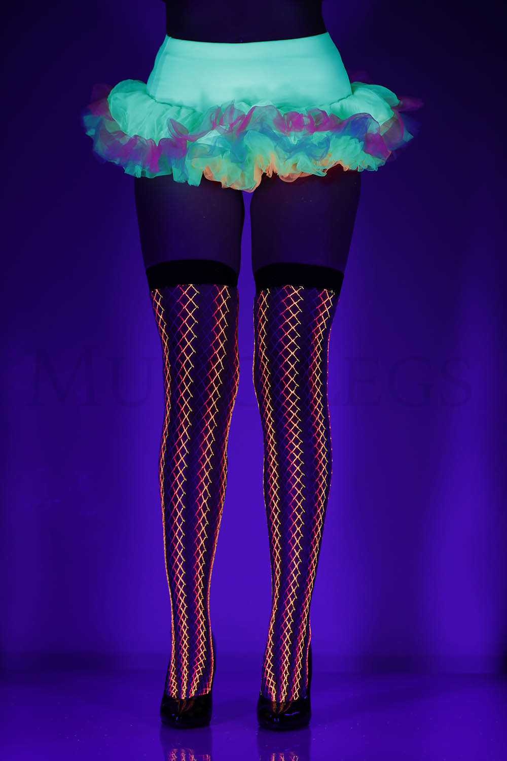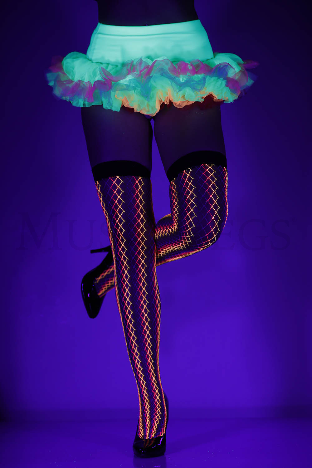 Neon color diamond net thigh hi with black top (Glow UV Reactive)