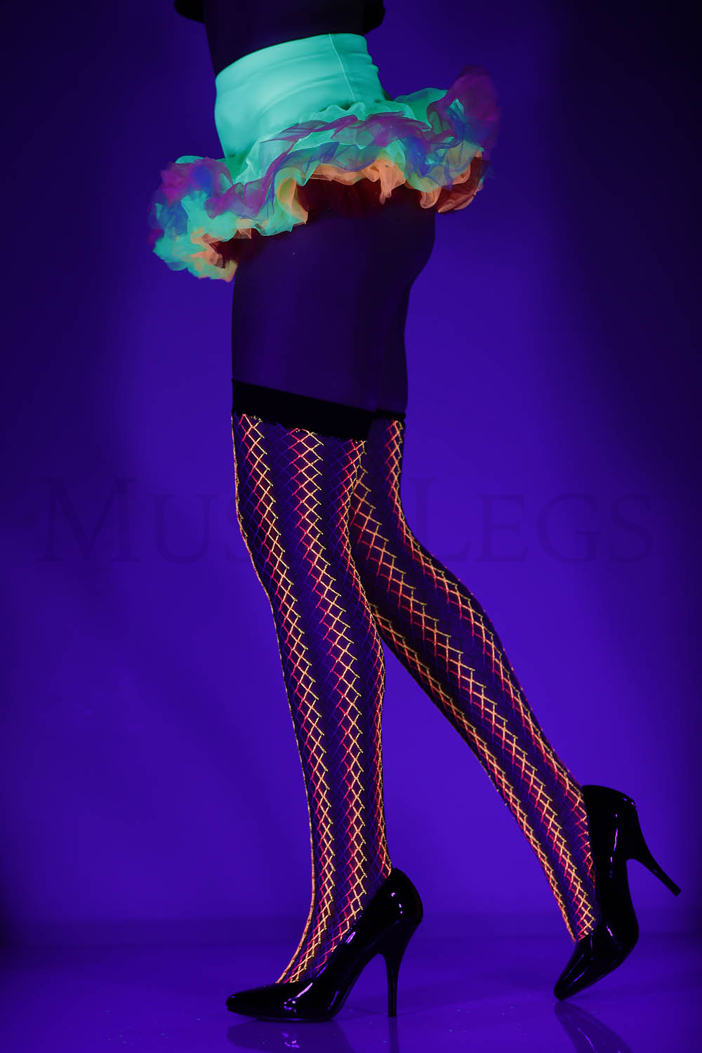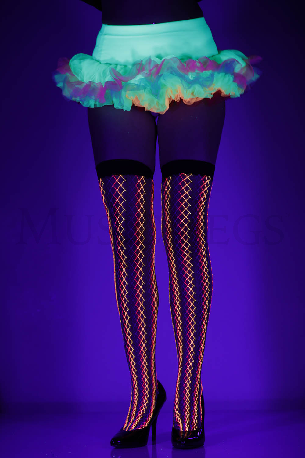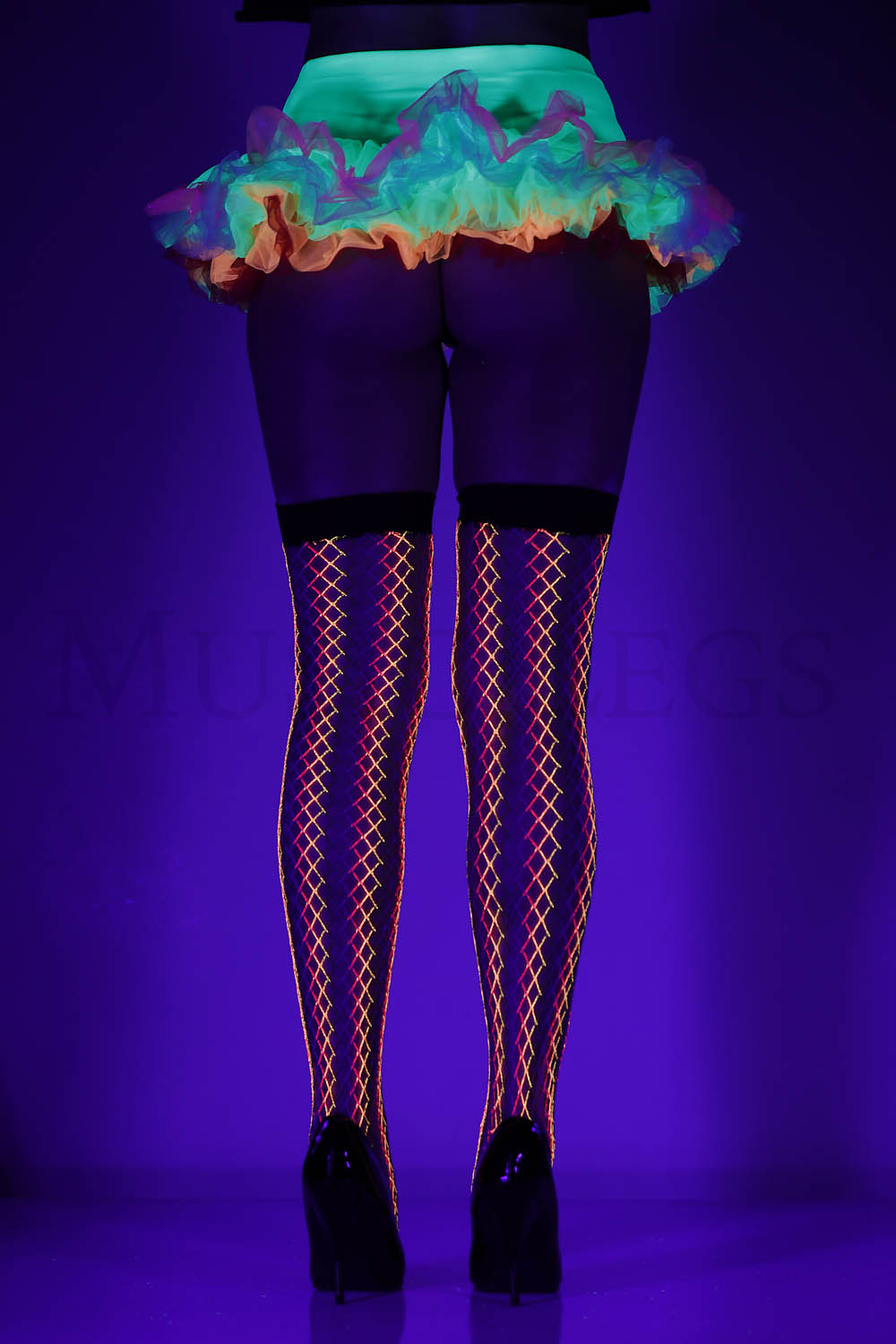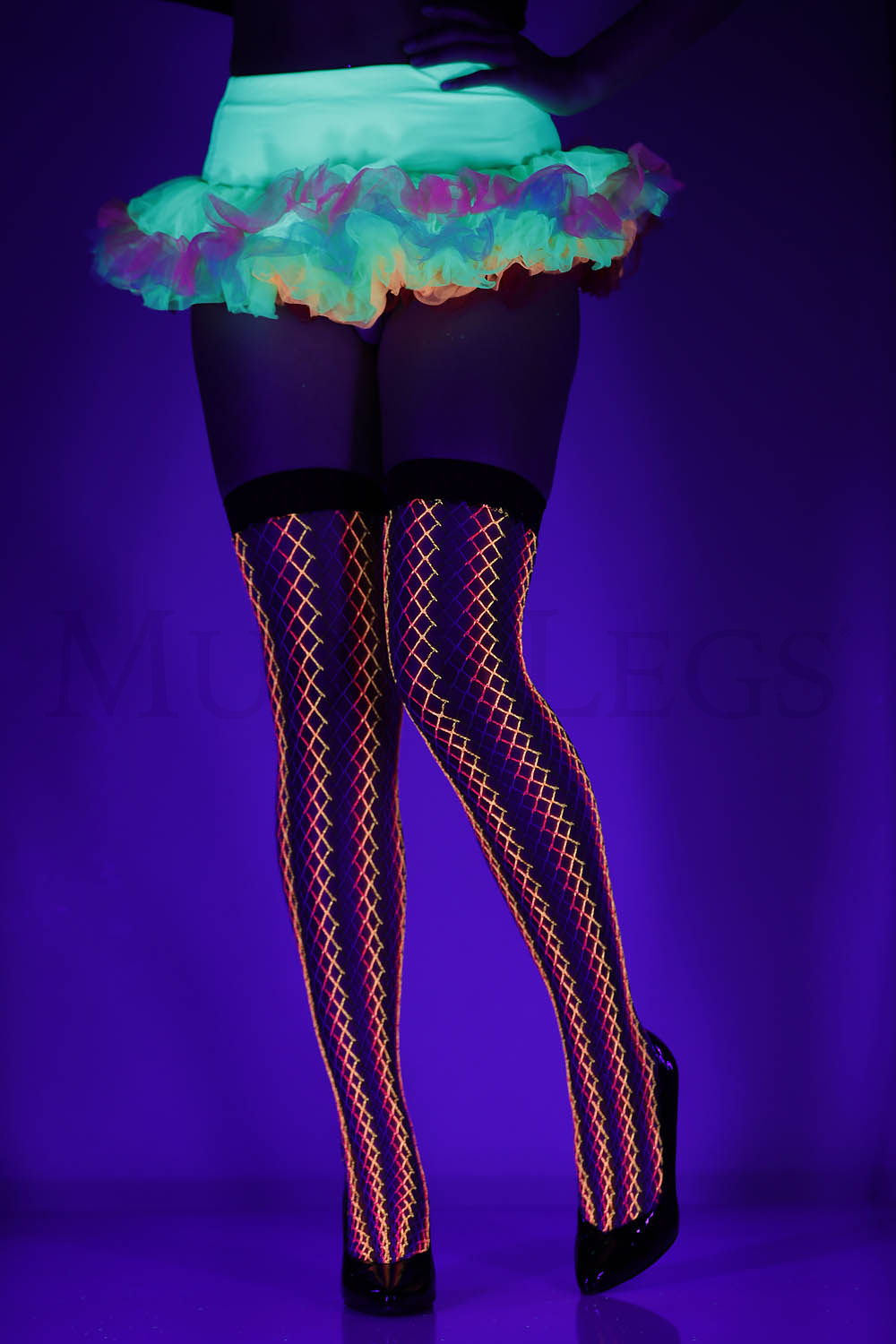 Neon color diamond net thigh hi with black top (Glow UV Reactive)