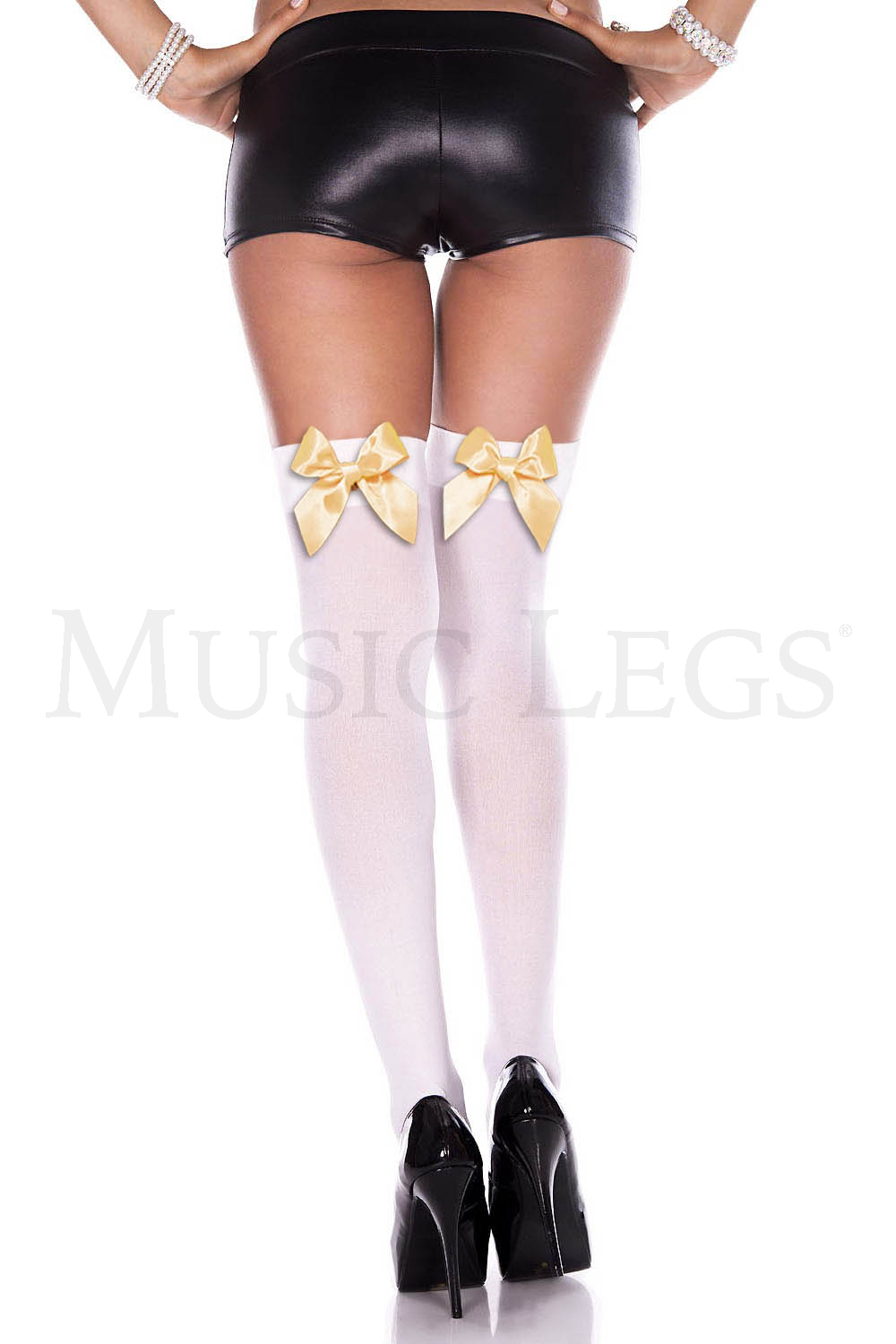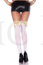 Satin bow opaque thigh hi