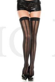 Sheer with opaque vertical stripes thigh hi