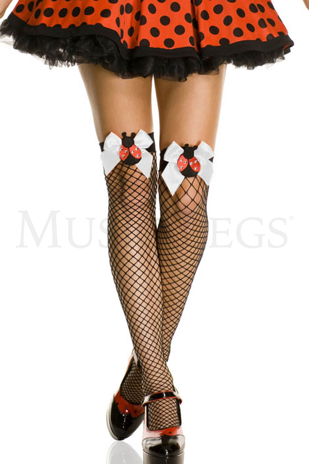 Diamond net thigh hi with lady bug and bow accents (No Packaging)