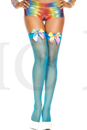 Rainbow satin bow fishnet thigh hi