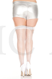 Plus size backseam and lace top fishnet thigh hi