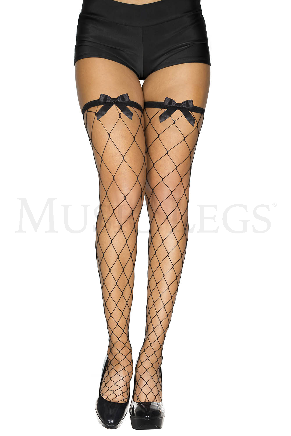 Diamond net spandex thigh hi with accent bow