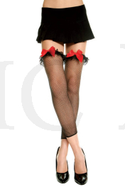 Spandex industrial net footless thigh hi with ruffles lace trim with bow