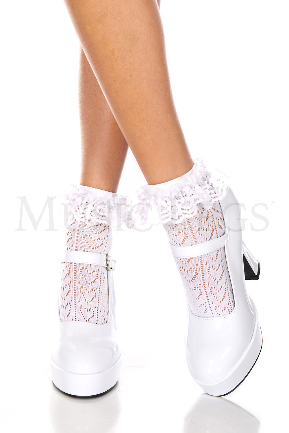 Heart net design ankle hi with ruffle trim