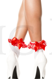 Opaque lace ruffle anklet with satin bow