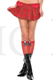Fishnet knee hi with embroided crossbone and skull top