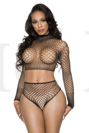 Mini diamond net long sleeve top with tying back panty (G-string not included)