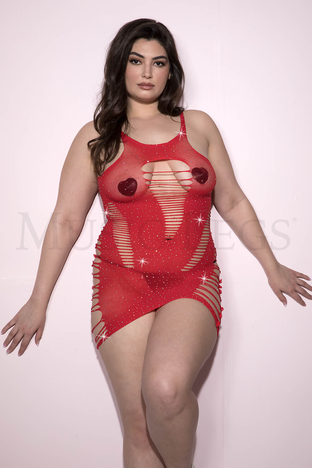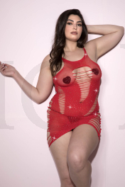 Plus size black mesh rhinestone chemise with slash detail cut out (G-string and pasties not included)