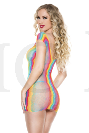 Rainbow net short sleeve mini with low back and scoop neck (G-string not included)