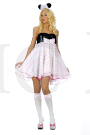 2 pc. Strapless dress with wet look bust and polka dot ruffle skirt with bow Includes: mouse ears