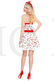 2 pc. Halter cherry print pin up dress Includes: Headband