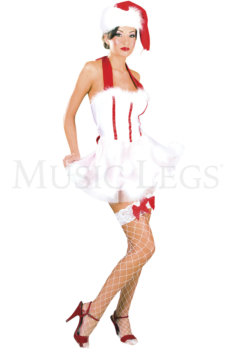 Sexy halter neck miss santa marabou trim dress includes hat, gloves