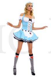 3 pc. Halter peasant style bodice with ribbon lacing and apron Includes: headband and knee hi