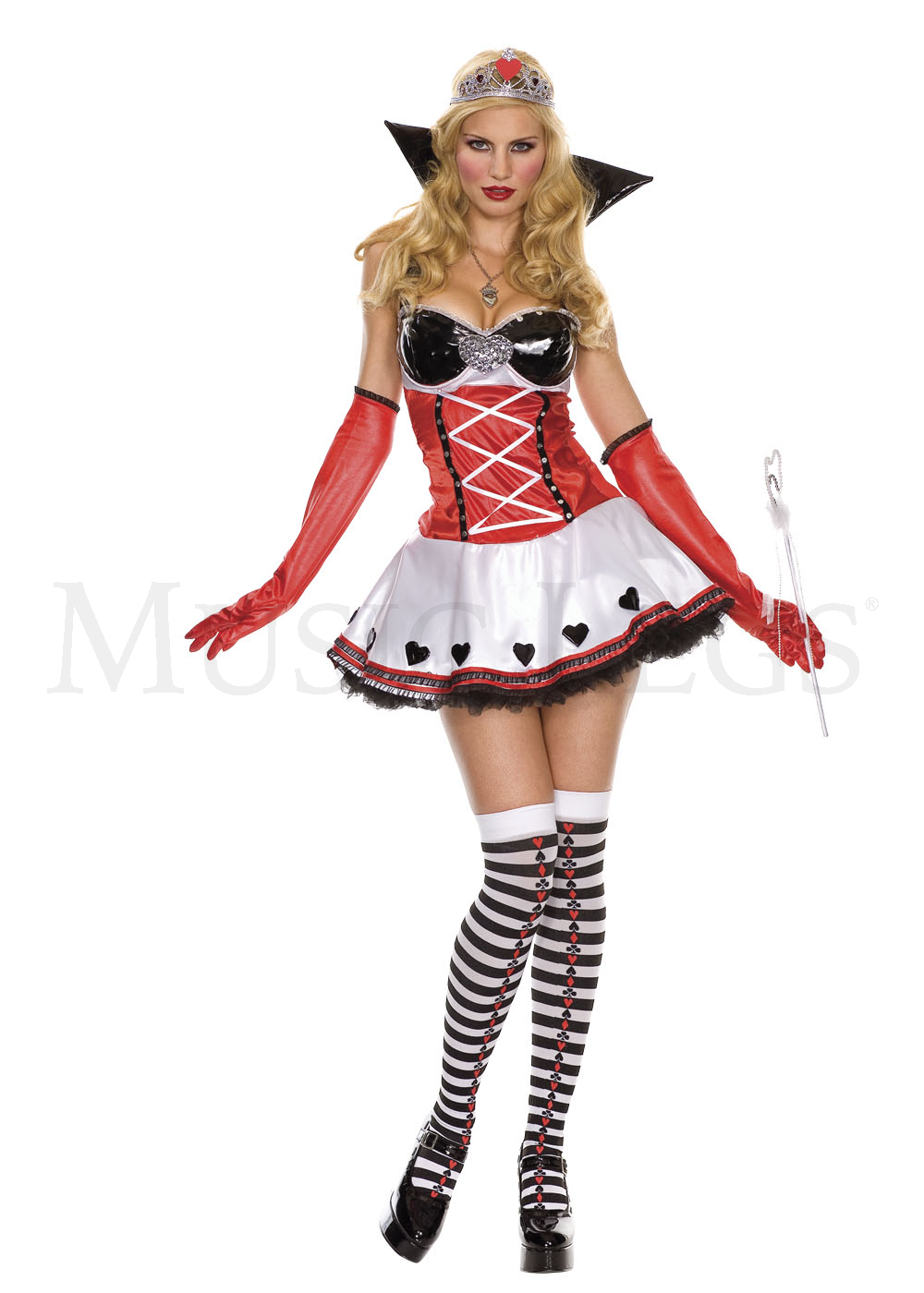 Elegant queen of hearts costume Includes: gloves, tiara, and sceptre