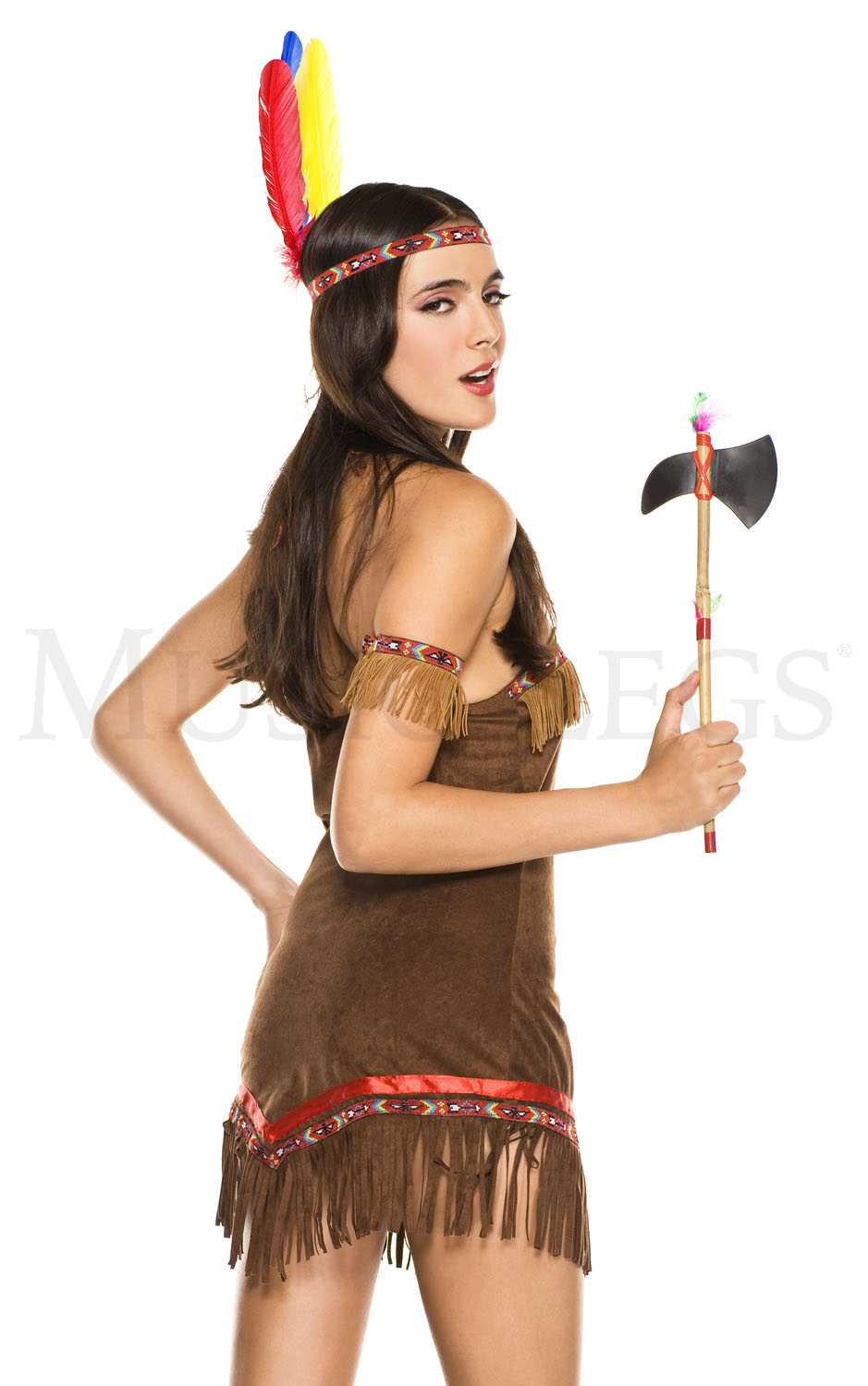 5 pc. Faux suede lace up front detail fringed dress Includes: headdress, choker and toy tomahawk
