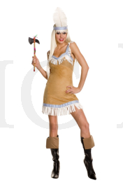3 pc. Faux suedefringed Indian dress.Includes: headpieceand toy tomahawk