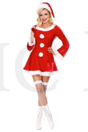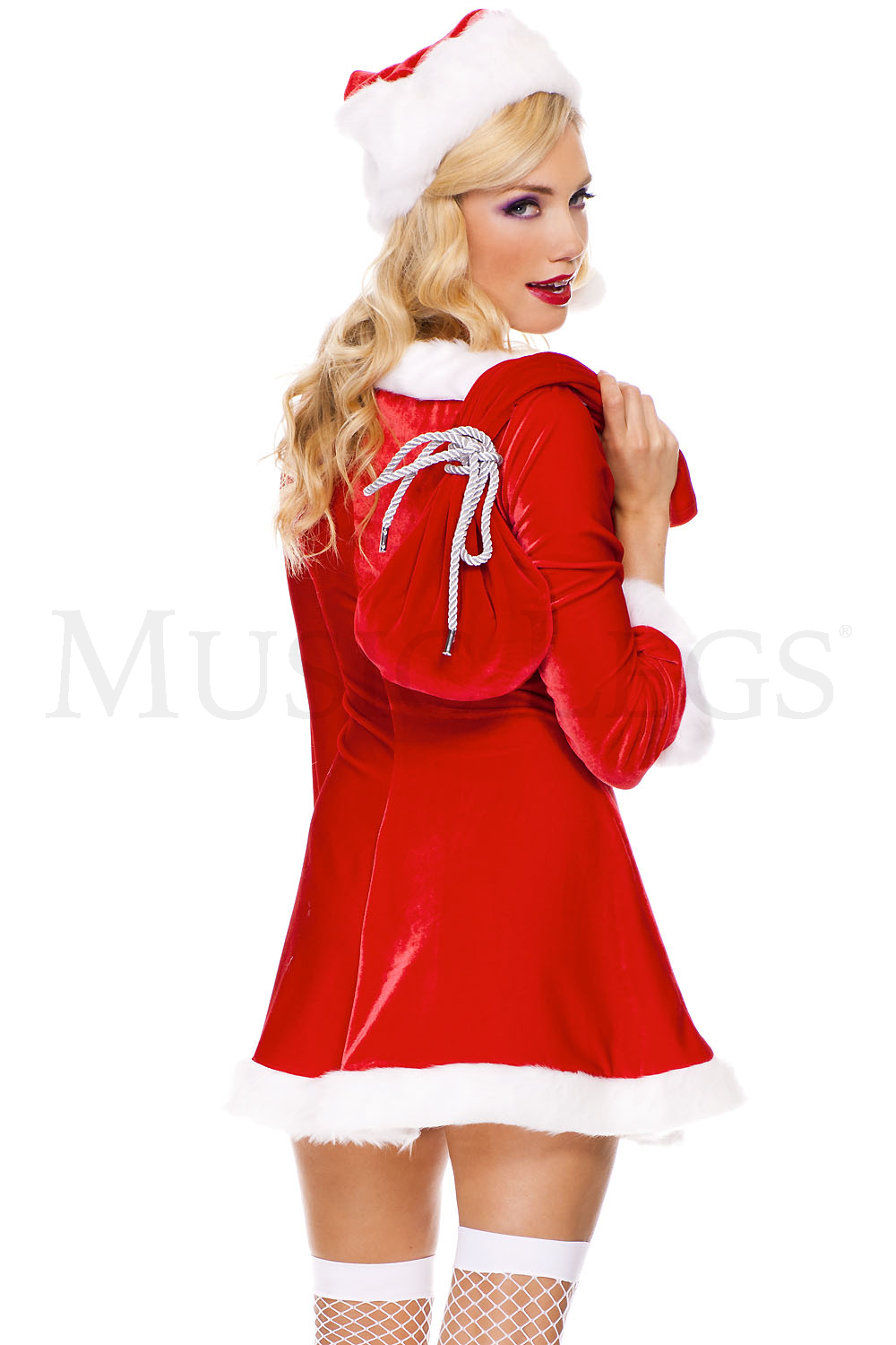 3 pc. Long sleeve marabou trimmed velvet dress Includes: santa sack and hat