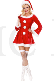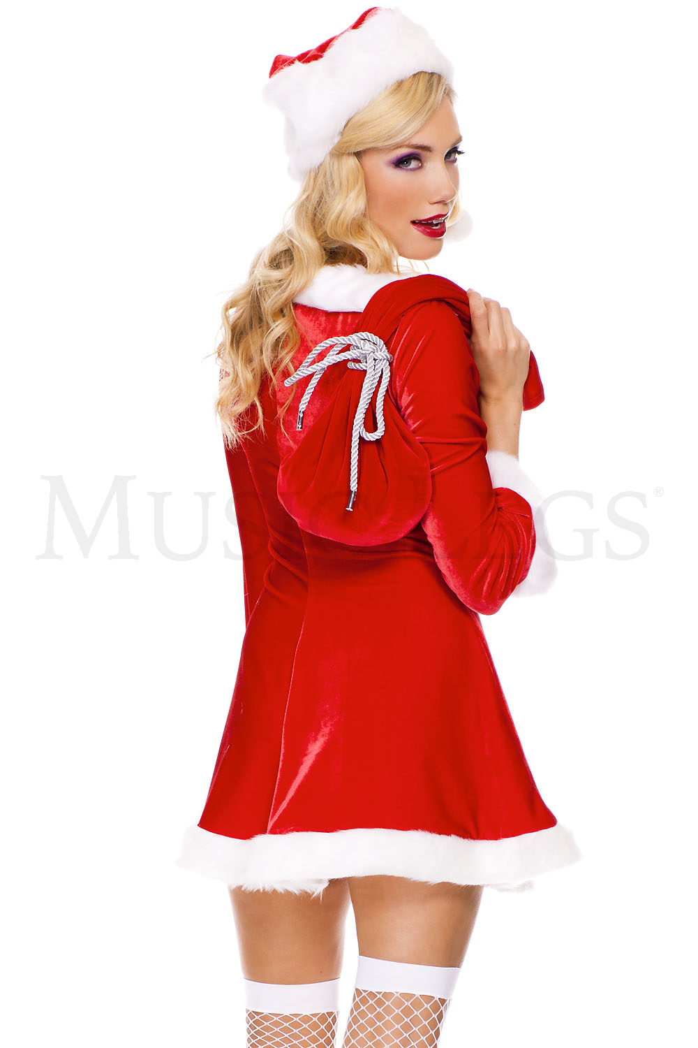 3 pc. Long sleeve marabou trimmed velvet dress Includes: santa sack and hat