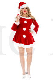 3 pc Plus size. long sleeve marabou trimmed velvet dress Includes: santa sack and hat