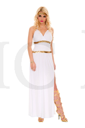 3 pc. Full-length halter Goddess outfit withsequined trim and side slit Includes: headpiece and rope ties