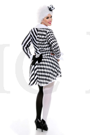 3 pc. Plus size black and white polka dot ruffle dress with long tailed coat Includes: hat