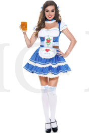 4 pc. Two layered embroidered peasant dress with ruffle trim top Includes: choker, hair bows and thigh hi