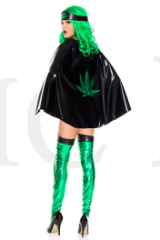 5 PC. Includes: Wet look leaf print romper with attached cape, headband, gloves, and thigh hi