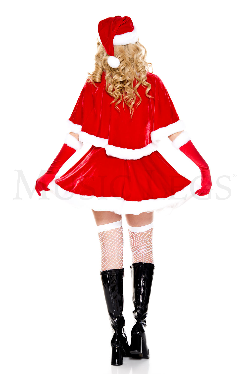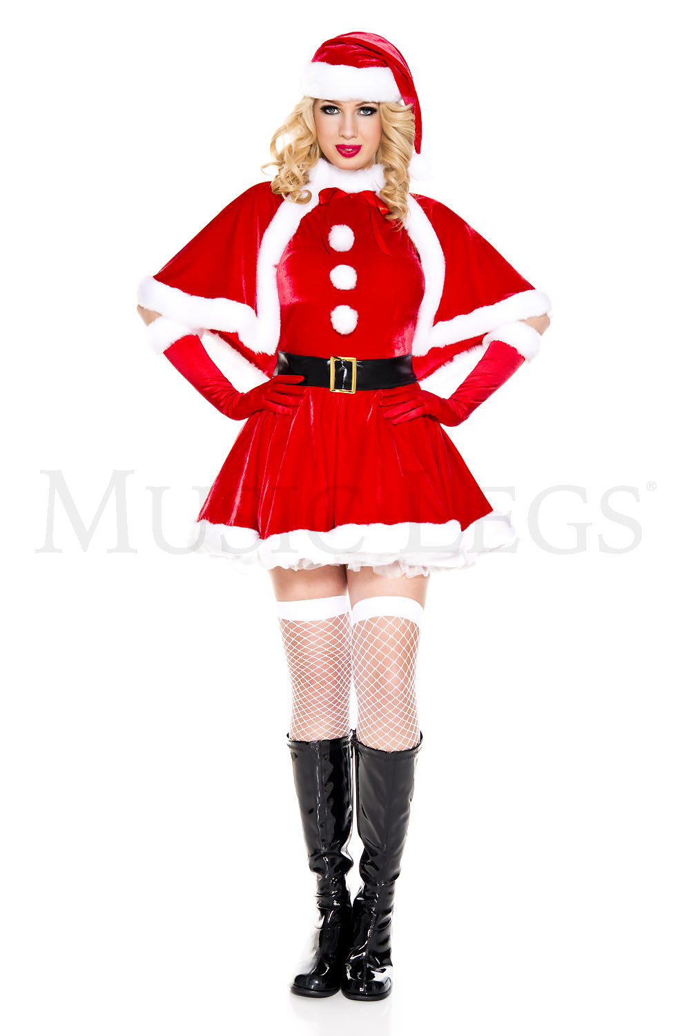 5 PC. Secret santa Includes: velvet dress with attached cape, hat, belt and gloves