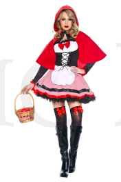 3 PC. includes: Lace up short sleeve dress, hooded cape, and gloves