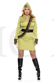 5 PC. Military Cadet Includes Plus size army green long sleeve dress, bullet belt, hat, belt and olive green gloves