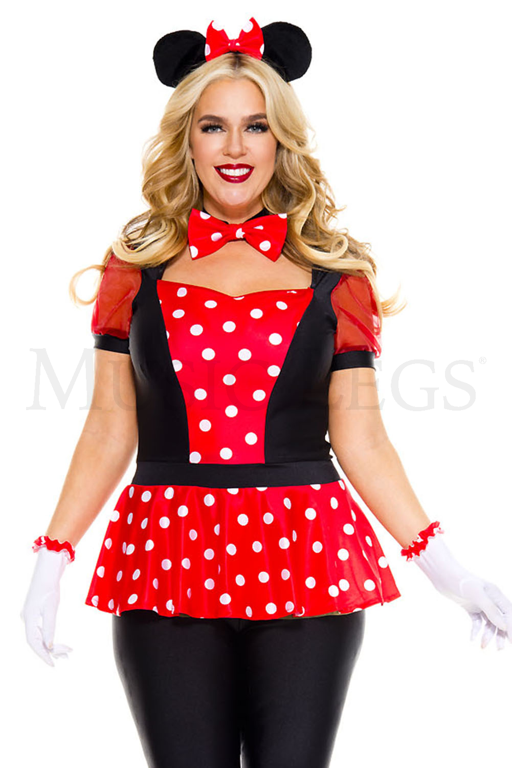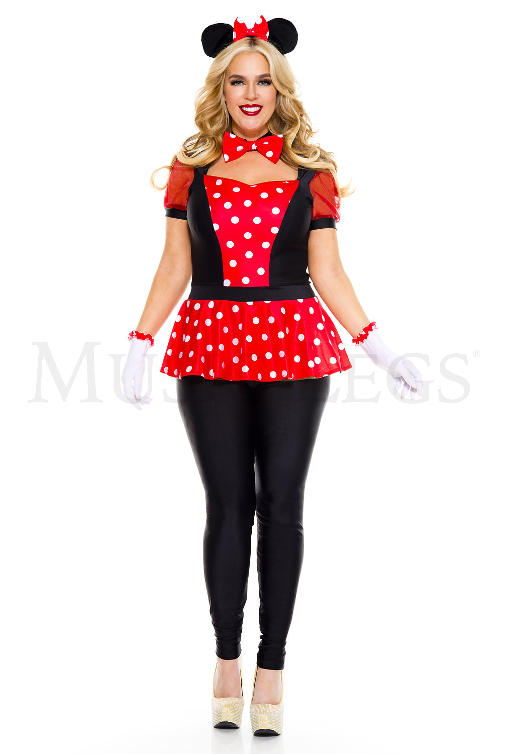 5 PC. Polka Dot Mouse Includes: Polka dot mini dress, leggings, headband, choker and gloves