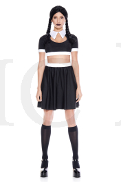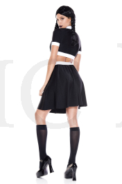 2 PC. includes: Black and white crop top with collar and above the knee skirt